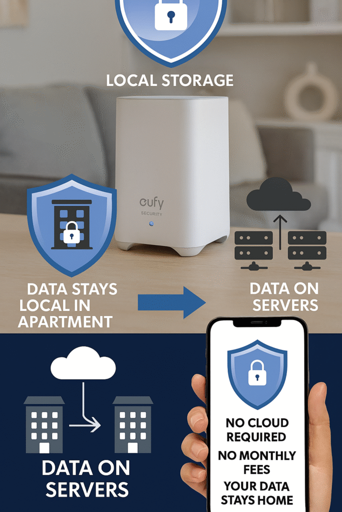 Privacy concerns plague many security systems (looking at you, Ring). Eufy emphasizes local storage and no cloud requirements, making it one of the most privacy-respecting best home security systems for apartments.