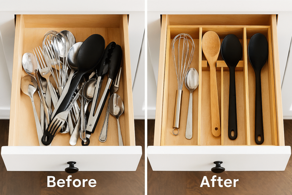 Best for: Utensil organization, gadget storage, junk drawer management