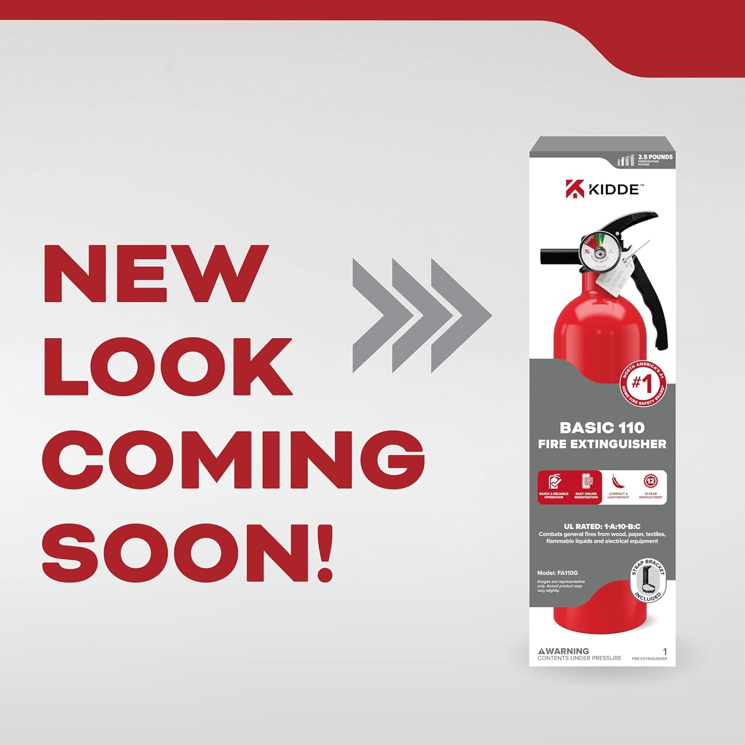 The Kidde FA110G is a lightweight, all‑metal 1A10BC fire extinguisher that tackles common household fires—including trash, wood, paper, liquids, gases, and electrical equipment—using 2.5 lbs of extinguishing agent. Its quick‑pull safety pin, easy‑to‑read gauge, UL‑listed 6‑year warranty, and compact design make it perfect for homes, offices, and dorms. Mount it effortlessly with the included UL‑approved bracket and enjoy 12 years of service‑free protection.
