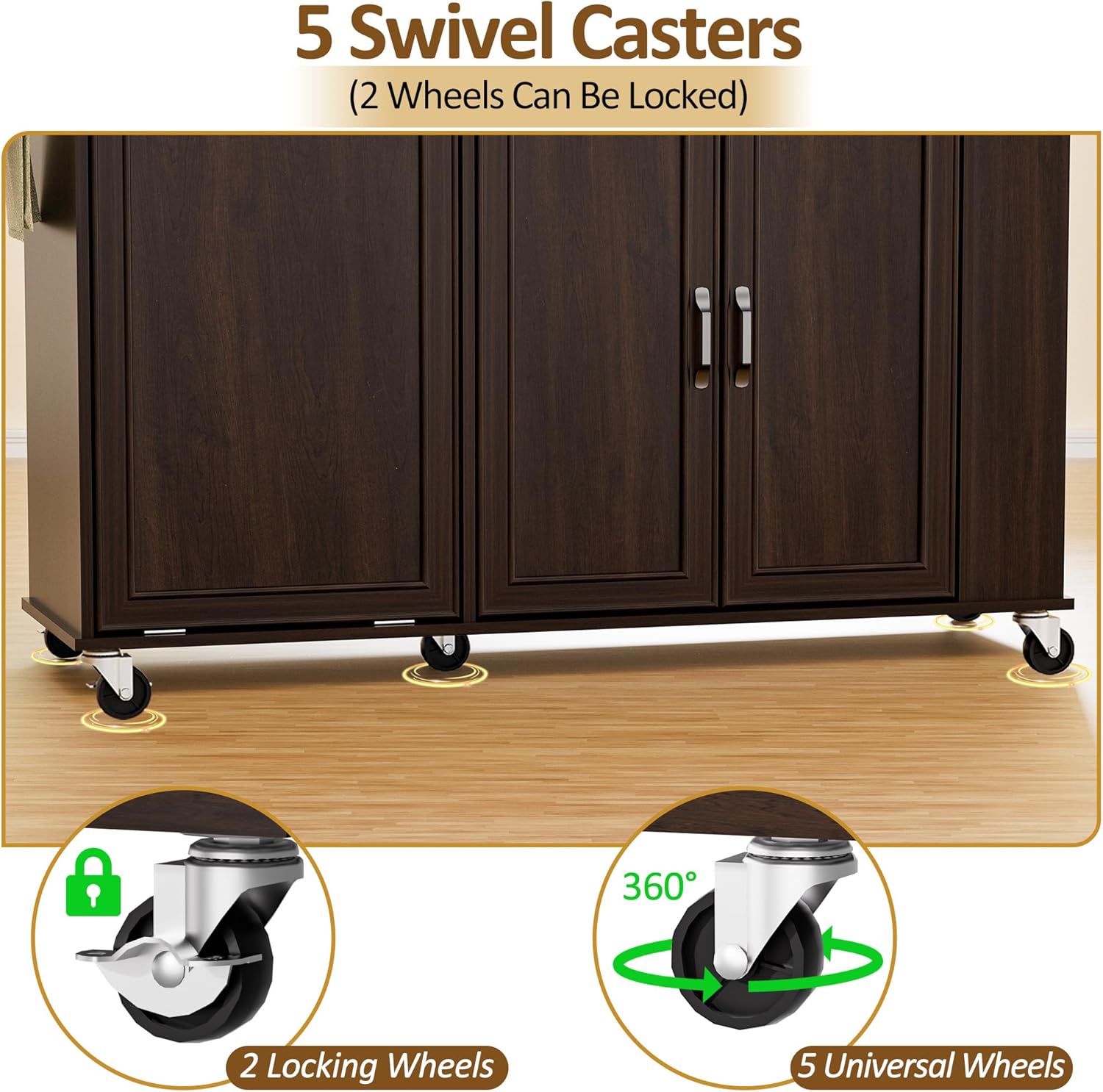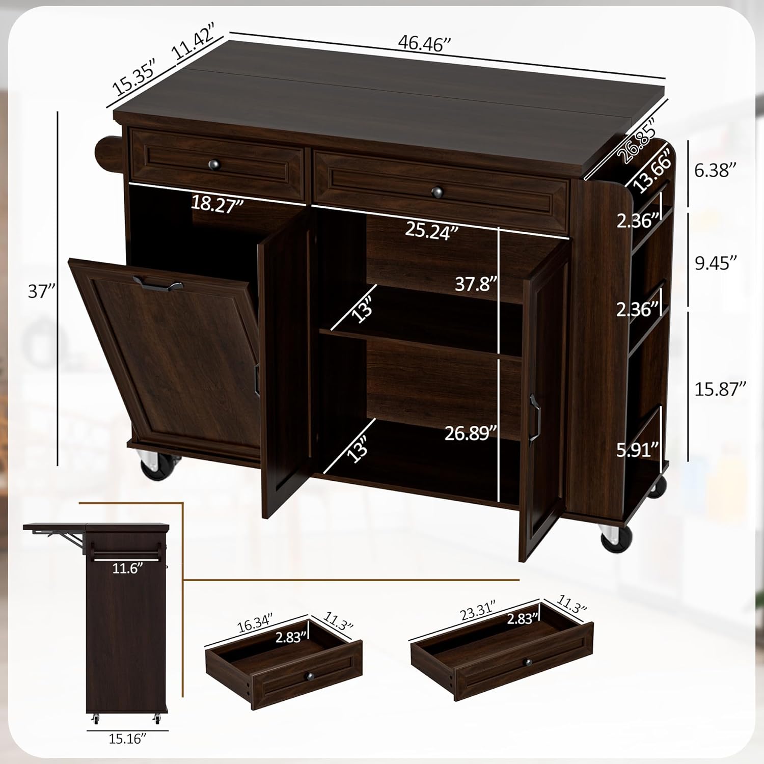 This 47″ rolling kitchen island with hidden trash storage and drop-leaf countertop is a smart, space-efficient solution for modern kitchens. It combines organization, mobility, and flexibility in a way few competitors do — especially at this size and price point.