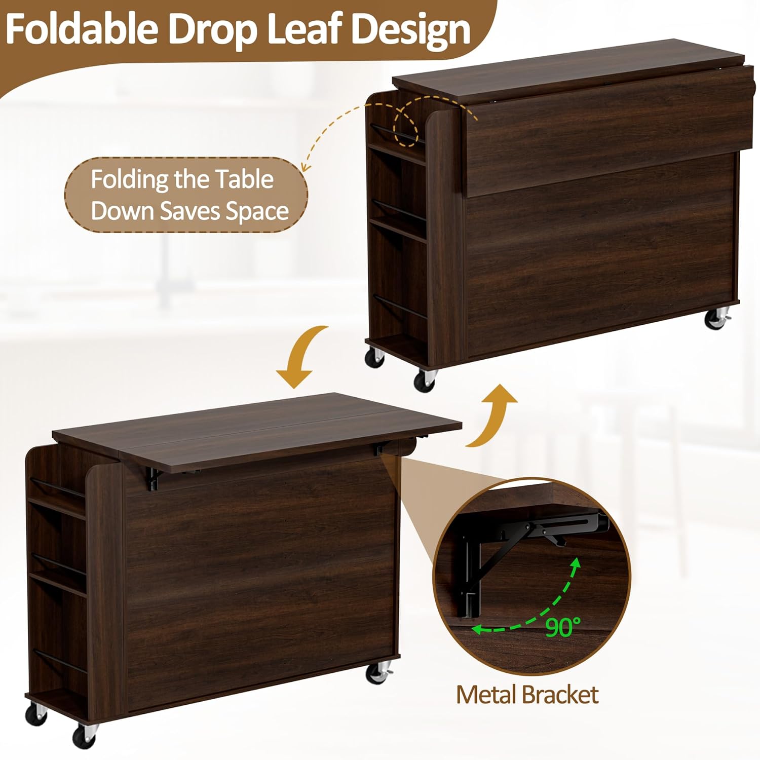 The Ancohom 47" Mobile Kitchen Island transforms small kitchens with its space-saving drop-leaf countertop, hidden trash storage, and all-in-one organization featuring 2 drawers, adjustable cabinet storage, and 3-tier spice racks. Built with a durable, scratch-resistant surface and smooth-rolling lockable wheels, this versatile kitchen cart effortlessly moves where you need it and locks firmly in place for stable meal prep, serving, or dining. Perfect for maximizing kitchen functionality whil...