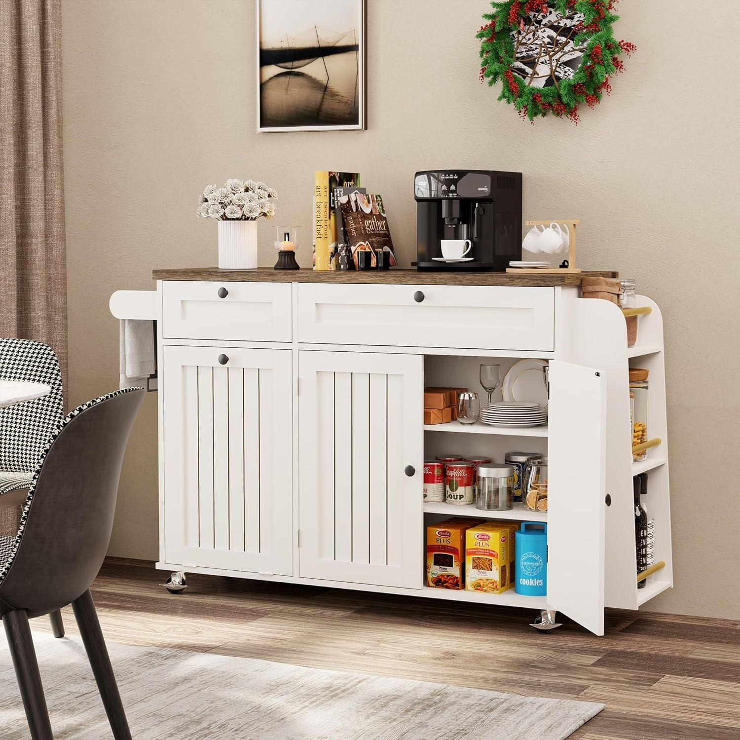 A rolling kitchen island changes how you use your kitchen space, but most models either skimp on storage or feel flimsy when you’re actually prepping food. The Cibert 60.2″ Rolling Kitchen Island tries to solve both problems with a drop leaf countertop that expands from 15.7 inches to 27.55 inches, a hidden trash can compartment, and built-in power outlets. After analyzing the design specs and real-world functionality, this rolling kitchen island delivers solid value for mid-sized kitchens—if you can overlook the particle board construction.